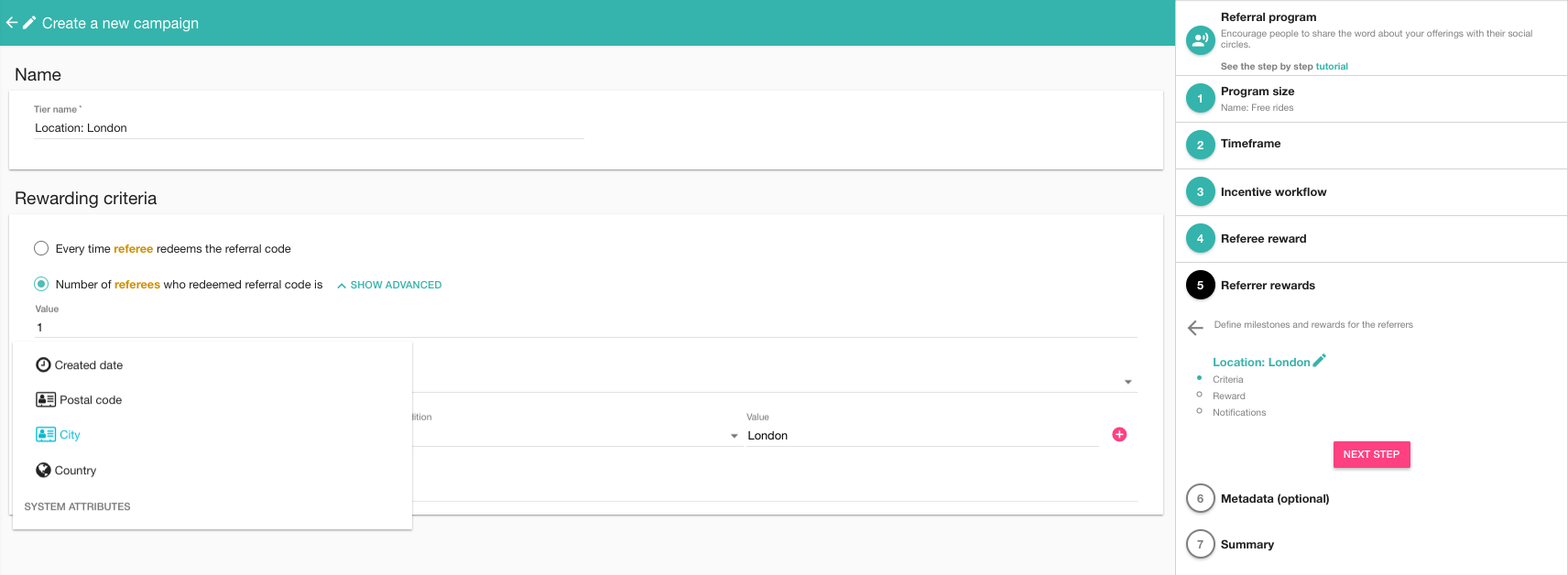 هنگامی که نوبت به دریافت پاداش های مختلف برای مشتریان از بخشهای مختلف می رسد. (در مورد Uber این شهر متفاوت است) ، Voucherify شما را نیز تحت پوشش خود قرار داد. برای مدل سازی این مورد می توانید از ردیف استفاده کنید. شایان ذکر است که ردیف ها نه تنها بر اساس تعداد مشتریان ارجاع شده بلکه براساس هر قانون اعتبار سنجی که می توانید با آن در ارتباط باشید ، این شامل مکان ، تاریخ خرید یا هر زمینه دلخواه دیگری است.