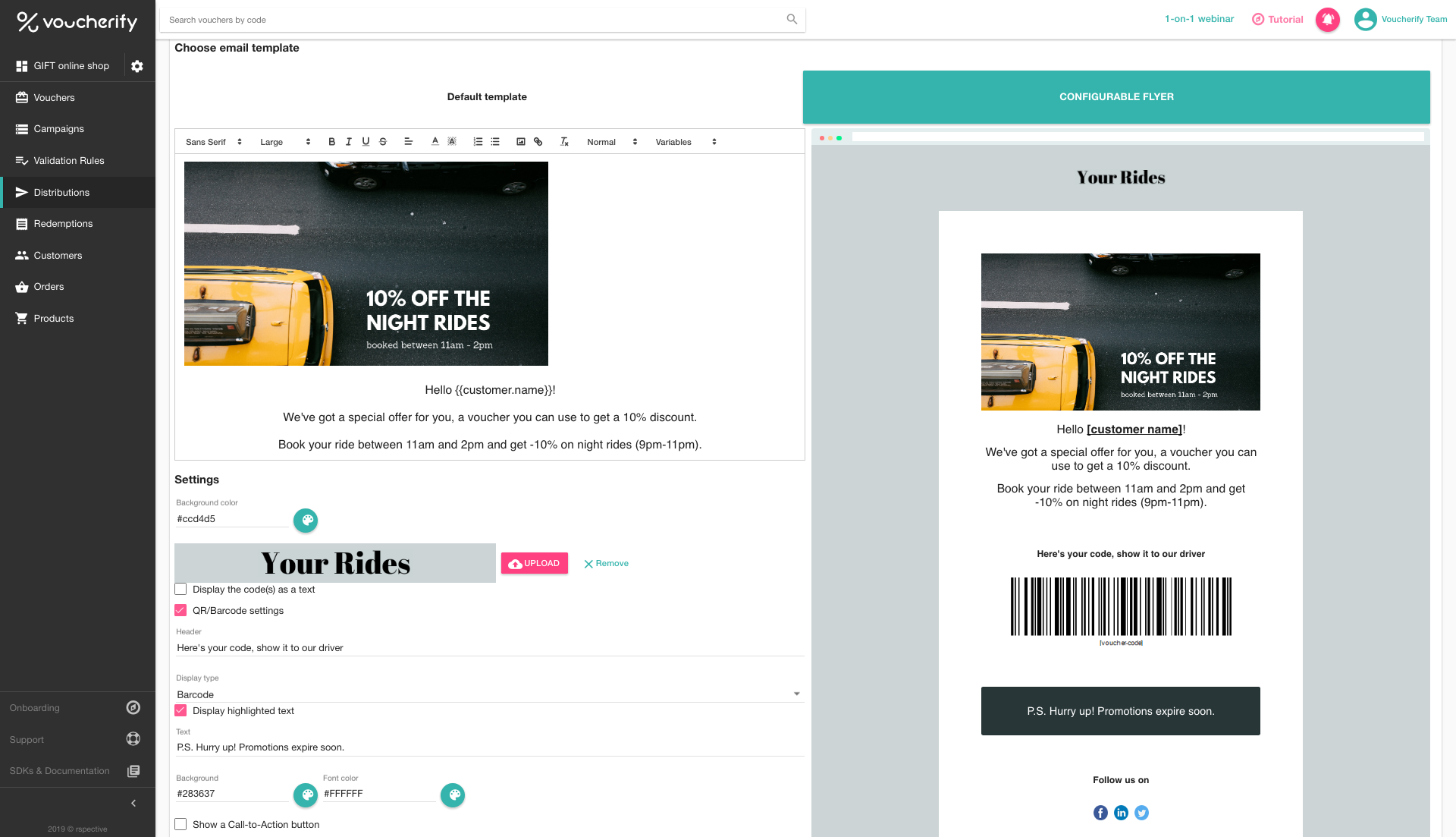 علاوه بر این ، Voucherify می تواند ایمیل / پیامک / فشار ارسال را به بفرستد و به طور دوره ای را به یادآوری کننده ارسال کند. کد را به حرکت درآورد تا جوایز خود را بدست آورید (درباره این مورد در بخش "ردیابی عملکرد" در زیر).