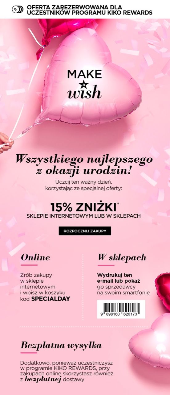 • کوپن KIKO 50 PLN (حدود 12 EUR) – امتیاز: 1500