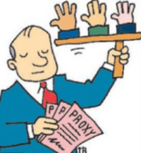 اگر نماینده آنها فرض کند پروکسی صادر کند که کنترل او را کنترل کند ، حق نمایندگی توسط نماینده منتخب آنها به طور مثر ساقط می شود. به عضوی دیگر از کنگره رأی دهید. اگر نماینده منطقه دیگری فرض کند رأی دهد و به جای آنها عمل کند ، این حق نیز به طور مثر ساقط می شود. قانون مجاز به رأی دادن به نیابتی باعث تمسخر در حق مردم برای نمایندگی توسط شخصی است که آنها انتخاب کرده اند.