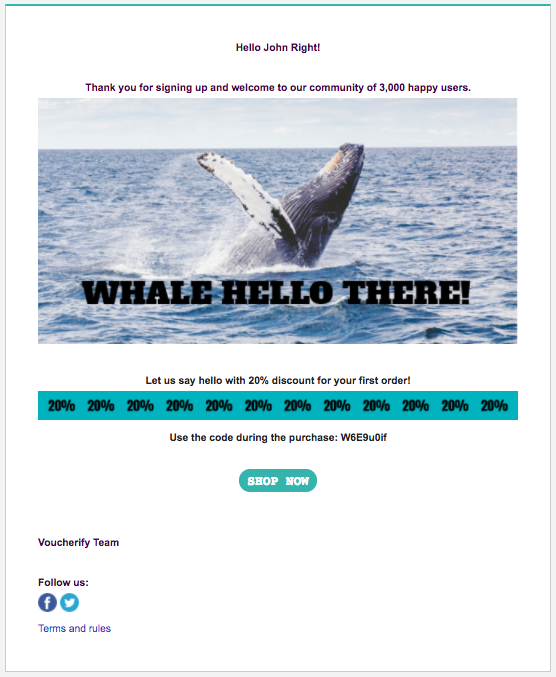 همانطور که می گویند ، برداشت اول فقط یک بار قابل انجام است. از این رو ، ایمیل خوش آمدید شما فرصتی عالی برای برقراری روابط سودمند با مشتری است. یکی از راه هایی که نشان می دهد از روز اول به آنها اهمیت می دهید اعطای پاداش فوری است ، به عنوان مثال یک کوپن تخفیف یا کارت هدیه برای اولین یا خرید بعدی.