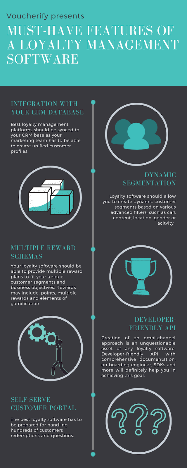 5 ویژگی اصلی سیستم مدیریت وفاداری: بخش های پویا ، شخصی سازی انگیزه ، ادغام و API ، پورتال مشتری خدمات خود ، اعلان ها.