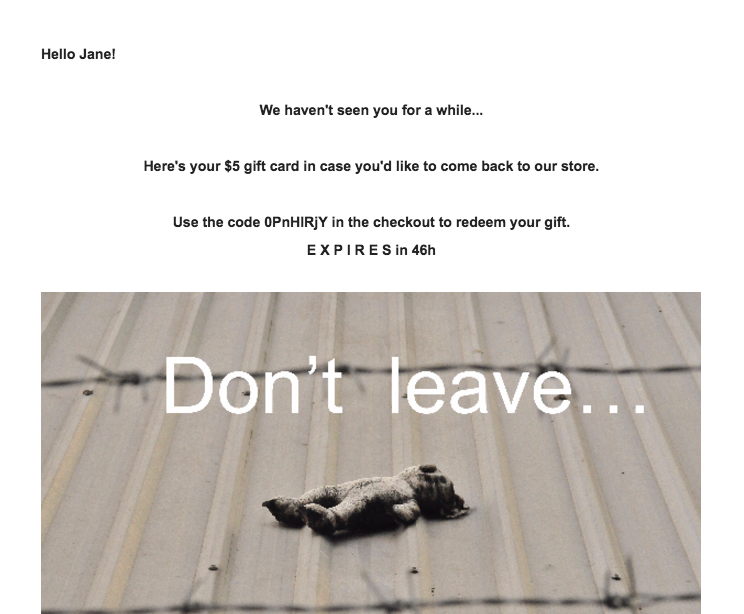 مورد نیاز: علاوه بر برخی دانش در مورد Loss Aversion ، در چنین تبلیغات پویا دستیابی به مشتری و ارائه پیام به موقع بسیار مهم است. . ایمیل ، پیام کوتاه ، و گفتگوی زنده مشهورترین کانالهایی هستند که می توانید برای ارسال پیامهای خودکار اما هنوز هم شخصی سازی شده با کارتهای هدیه از آنها استفاده کنید. هر یک از این کانالها می توانند انتخاب خوبی باشند ، اما تنها در صورت جمع شدن می توانند واقعاً به بهترین وجه خود کار کنند. از هر کانال دیگری که می خواهید استفاده کنید ، بخاطر داشته باشید که مردم این روزها در حال تلاش برای تجربه واقعی کانال [OmniOmni هستند.