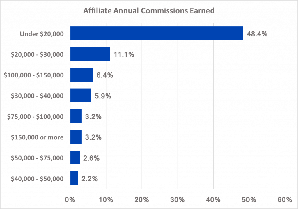 با این وجود ، بازاریابی شرکت های وابسته همچنان یک صنعت بزرگ دیجیتال است – هزینه های این سال بیش از 6.8 میلیارد دلار امسال ، فقط در ایالات متحده است – فقط درصد کمی از شرکت های وابسته در حال گرفتن جوایز قابل توجه هستند. تقریبا نیمی از شرکت های وابسته سالانه کمتر از 20،000 دلار در سال از کمیسیون های خود می گیرند.